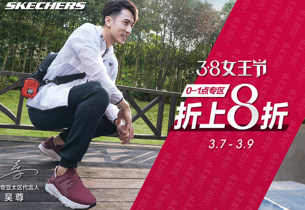 促销活动:天猫 SKECHERS/斯凯奇 女王节 前1小时8折,店铺券+购物津贴