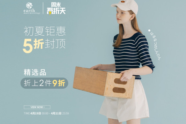 19日0点、促销活动:天猫精选 Earth Music&Ecology 精选春夏装大促 5折封顶
